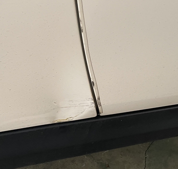 - 차량 조수석 쪽 아래쪽이 찍혔습니다(원인 불분명..) / 첨부 사진 (문옆은 테이프에 때 낀거에요..)