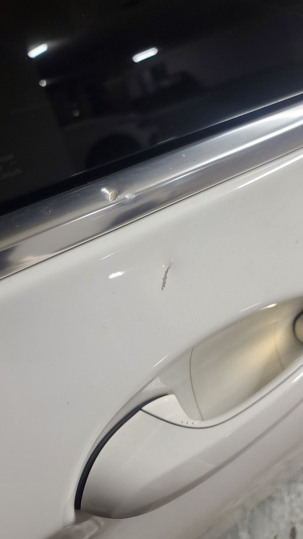 돌이 위에서 떨어져서 문에 기스와 눌림이 생겼고요